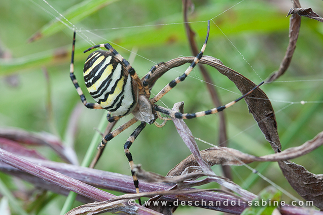 : Epeire fasciée (Argiope bruennichi), femelle, Baie de Seine (76), France.