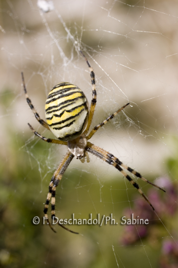 : Epeire fasciée (Argiope bruennichi) femelle, Baie de Seine (76), France.