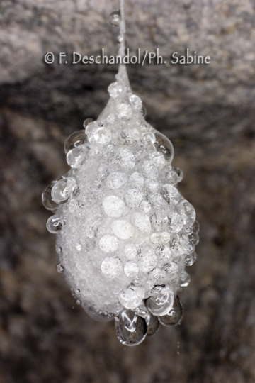 : Araignée cavernicole (Meta menardi), cocon, St. Nicolas de la Taille (76), France.