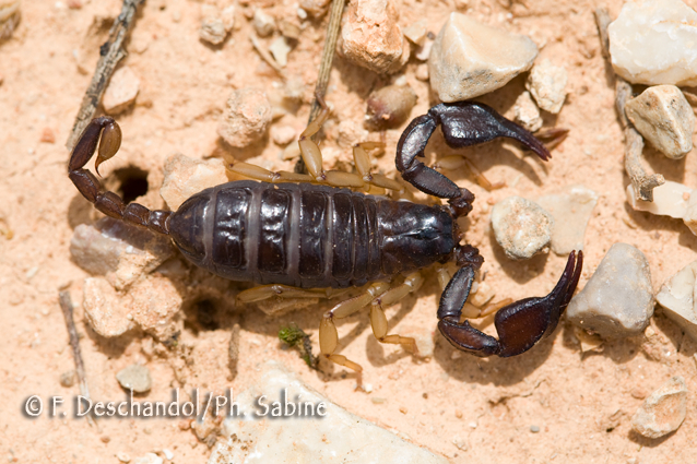 : (Euscorpius concinnus), femelle, Aiguines (83), France.