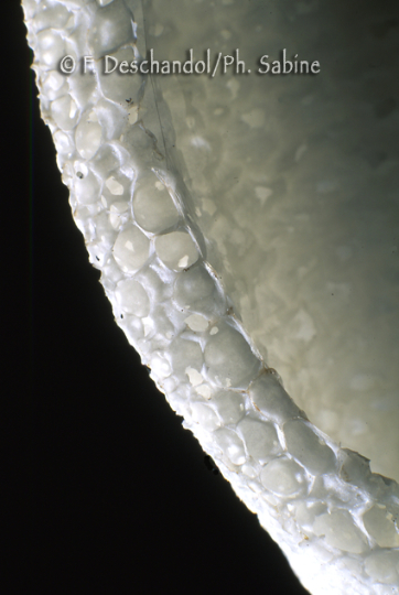 : Satyre puant (Phallus impudicus), structure du pied en coupe, Bois de Rogerville (76), France.