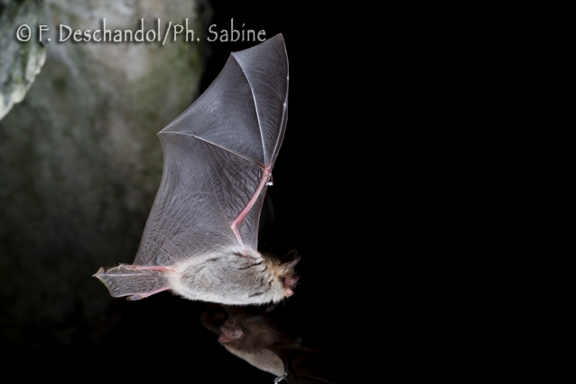 : Vespertilion de Natterer (Myotis nattereri), en vol, Orne (61), France.