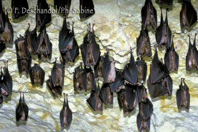: Grands rhinolophes (Rhinolophus ferrumequinum), colonie, Normandie, France.