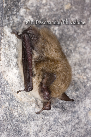 : Vespertilion à oreilles échancrées (Myotis emarginatus), St. Nicolas de la Taille (76), France.