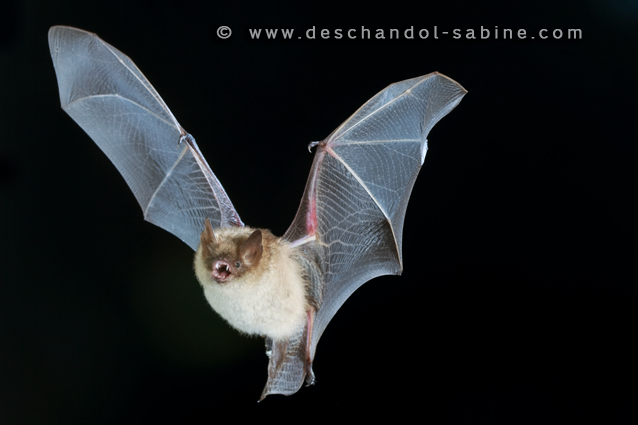 : Vespertilion à oreilles échancrées (Myotis emarginatus), Orne (61), France.