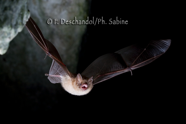 : Vespertilion à oreilles échancrées (Myotis emarginatus), Orne (61), France.