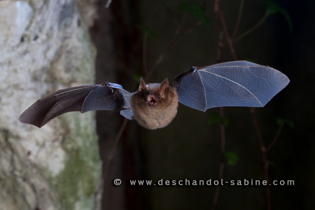 : Vespertilion à oreilles échancrées (Myotis emarginatus), Orne (61), France.