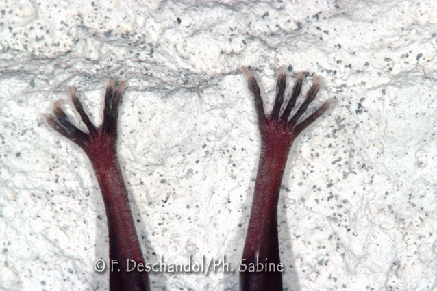 : Grand rhinolophe (Rhinolophus ferrumequinum), détail des pattes, Normandie, France.