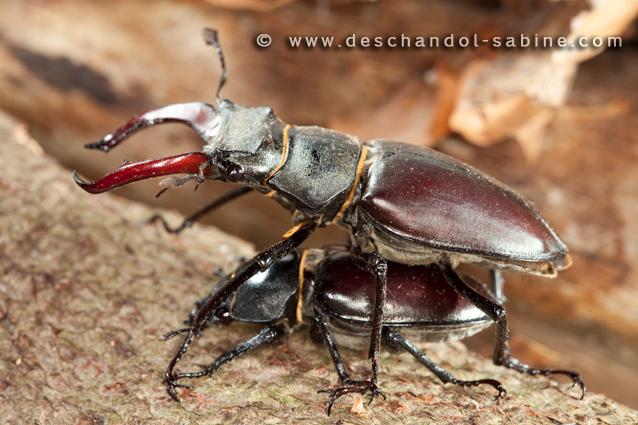 : Lucanes cerfs-volants (Lucanus cervus), accouplement, Le Havre (76), France.