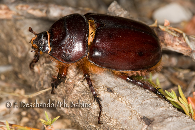 : Rhinocéros (Oryctes nasicornis), femelle, Aiguines (83), France.