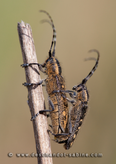 : (Saperda populnea), accouplement, Baie de Seine (76), France.