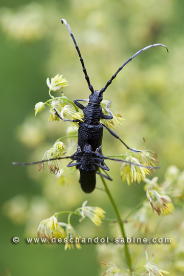 : Petits capricornes (Cerambyx scopolii), accouplement, Krupa, Croatie.
