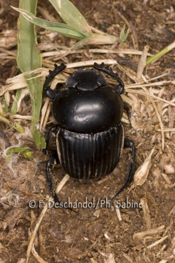 : Bousier sacré (Scarabaeus laticolis), Monfragüe, Espagne.