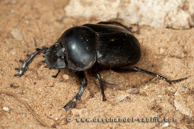: Bousier sacré (Scarabaeus sacer), Doñana, Espagne.