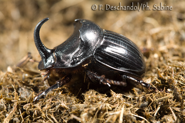 : (Copris hispanus), mâle, Doñana, Espagne.