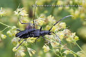Petits capricornes (Cerambyx scopolii), accouplement, Krupa, Croatie.