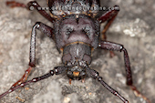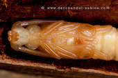Aegosome (Aegosoma scabricorne), nymphe, détail de la tête, Sainte-Pazanne (44), France.