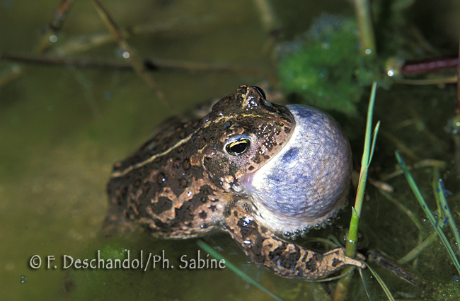 : Crapaud calamite (Bufo calamita), mâle chantant, Baie de Seine (76), France.