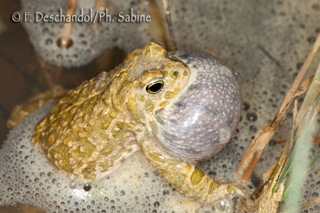 : Crapaud calamite (Bufo calamita), mâle chantant, Lagune de Zaida, Espagne.