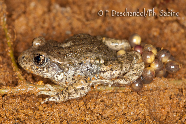 : Alyte accoucheur (Alytes obstetricans obstetricans), mâle avec oeufs, Mernel (35), France.
