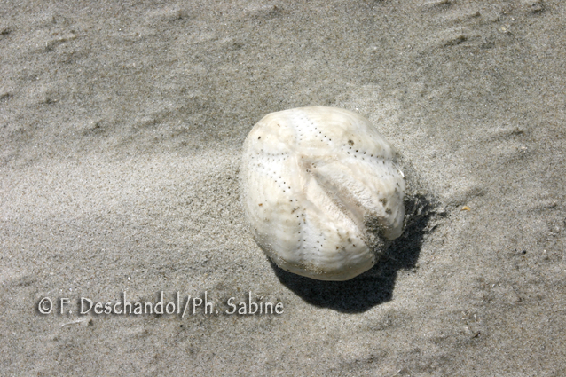 : Oursin des sables (Echinocardium cordatum), test, Ile de Schiermonnikoog, Pays-Bas.