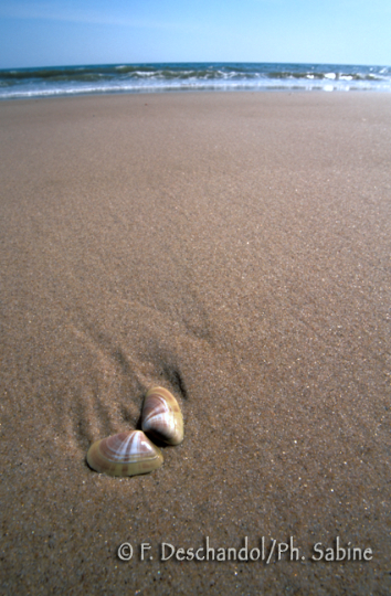 : Olive de mer (Donax vittatus), Doñana, Espagne.