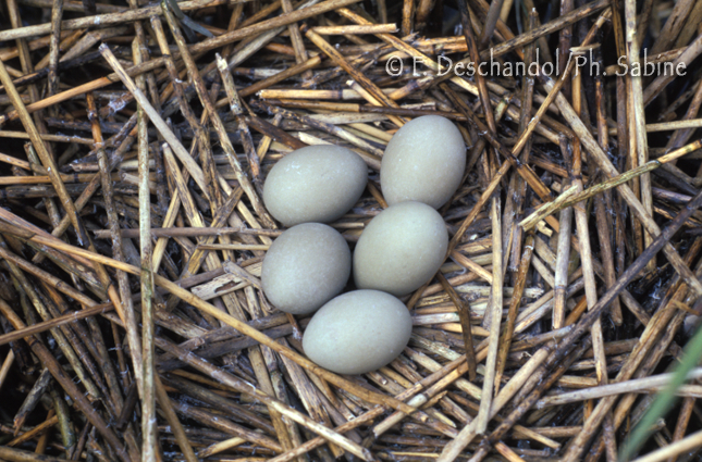 : Butor étoilé (Botaurus stellaris), nid et oeufs, Baie de Seine (76), France.