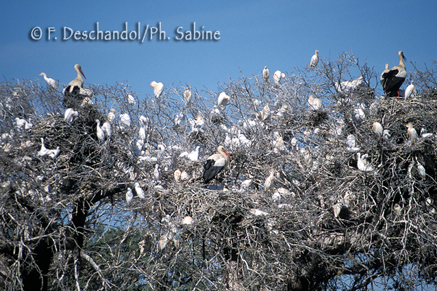 : Hérons garde-boeufs (Bubulcus ibis) et Cigognes blanches (Ciconia ciconia), colonie, Trujillo, Espagne.
