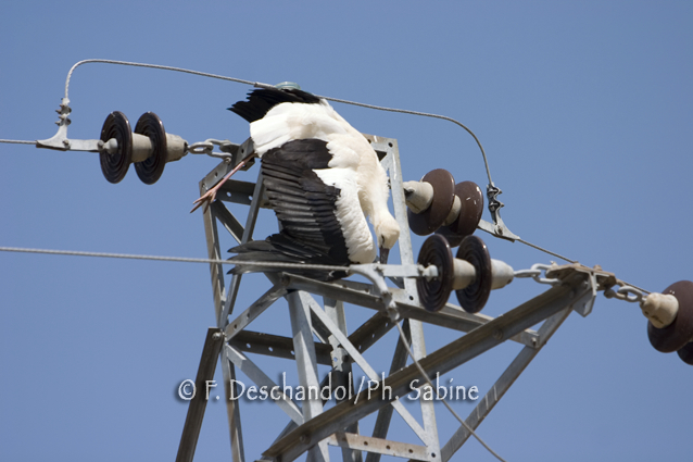 : Cigogne blanche (Ciconia ciconia), Jeune électrocutée, Talavan, Monfragüe, Espagne.