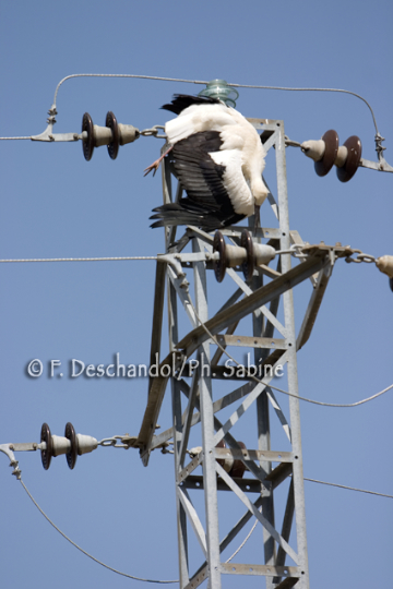 : Cigogne blanche (Ciconia ciconia), Jeune électrocutée, Talavan, Monfragüe, Espagne.