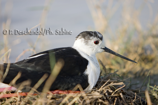 : Echasse blanche (Himantopus himantopus), au nid, Lagune de Zaida, Espagne.
