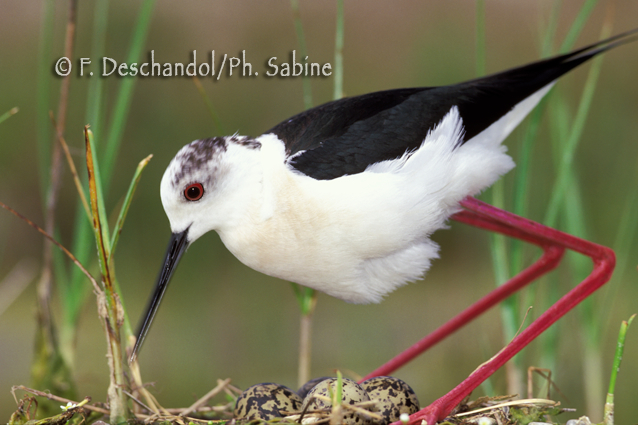: Echasse blanche (Himantopus himantopus), au nid, Baie de Seine (76), France.
