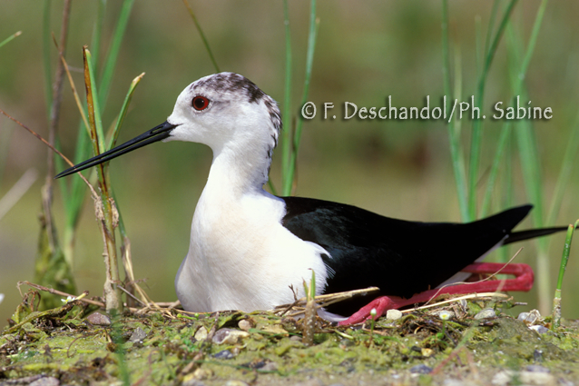 : Echasse blanche (Himantopus himantopus), au nid, Baie de Seine (76), France.