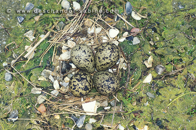 : Echasse blanche (Himantopus himantopus), nid et oeufs, Baie de Seine (76), France.
