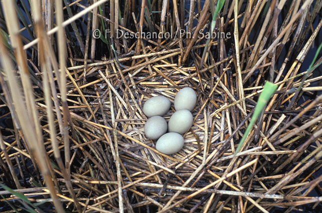 : Butor étoilé (Botaurus stellaris), nid et oeufs, Baie de Seine (76), France.