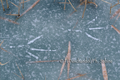 Butor étoilé (Botaurus stellaris), traces dans la glace, Baie de Seine (76), France.