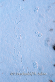 Butor étoilé (Botaurus stellaris) et Renard roux, traces dans la neige, Baie de Seine (76), France.