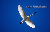 Spatule blanche (Platalea leucorodia), en vol, Marismas del Odiel, Huelva, Espagne.