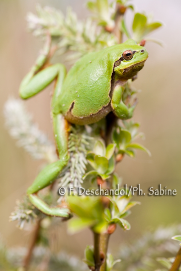 : Rainette verte (Hyla arborea arborea), mâle, Marais Vernier (76), France.
