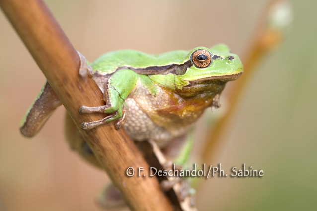 : Rainette verte (Hyla arborea arborea), mâle, Marais Vernier (76), France.