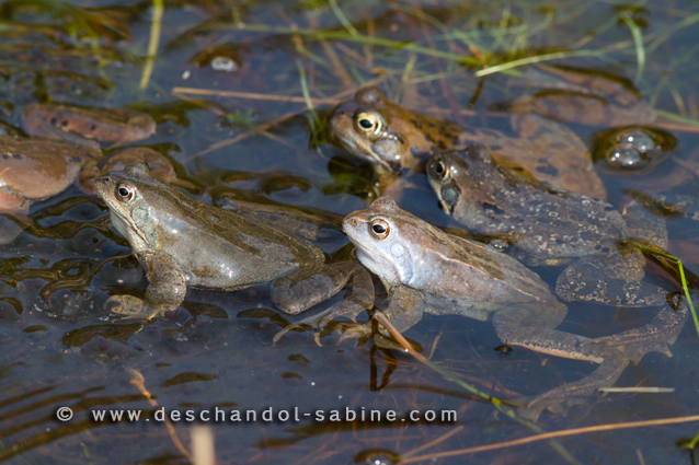: Grenouille des champs & Grenouilles rousses (Rana arvalis & Rana temporaria), As, Belgique.