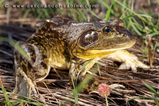 : Grenouille taureau (Lithobates catesbeianus), Fronsac (33), France.