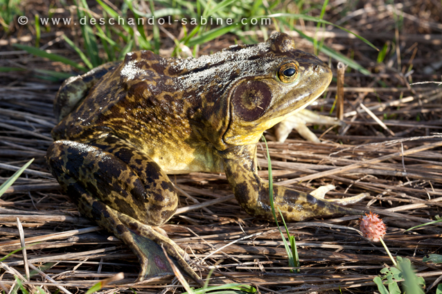 : Grenouille taureau (Lithobates catesbeianus), Fronsac (33), France.