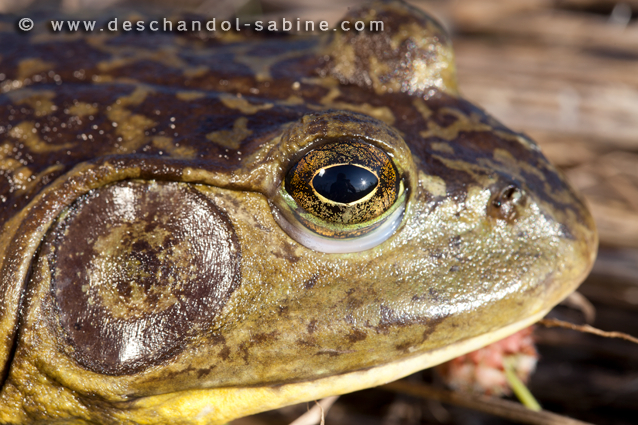 : Grenouille taureau (Lithobates catesbeianus), Fronsac (33), France.