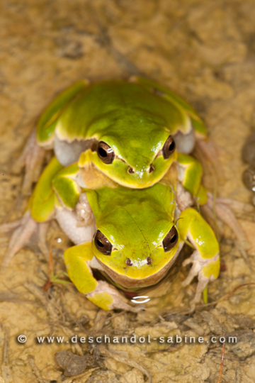 : Rainettes italiennes (Hyla intermedia), amplexus, Venise, Italie.