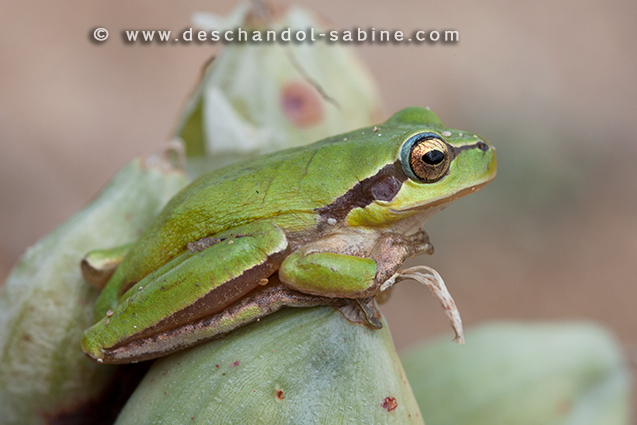 : Rainette méridionale (Hyla meridionalis), Cala Tirant, Minorque, Baléares, Espagne.