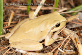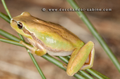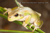 Rainette méridionale (Hyla meridionalis), mâle, présence accidentelle en Baie de Seine (76), France.