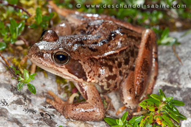 : Grenouille rousse (Rana temporaria parvipalmata), Picos de Europa, Espagne.