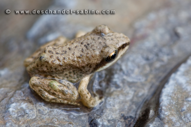 : Grenouille des Pyrénées (Rana pyrenaica), juvénile, Zuriza, Espagne.