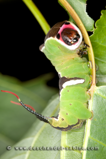 : Hermine (Cerura erminea), chenille 5ème stade, attitude d'intimidation, Saverne (67) France.